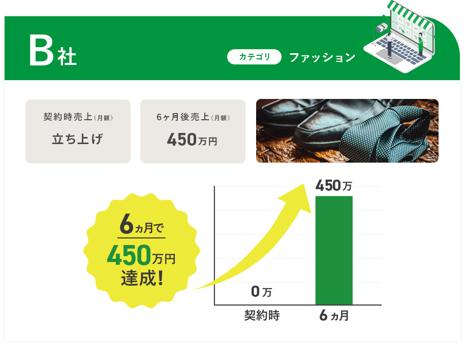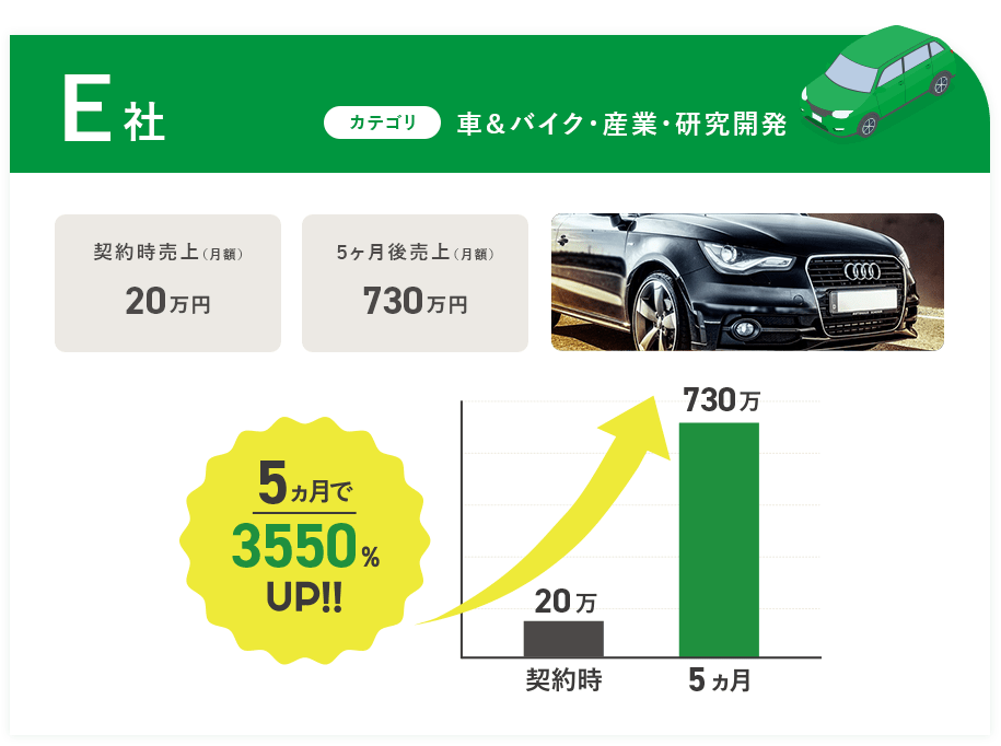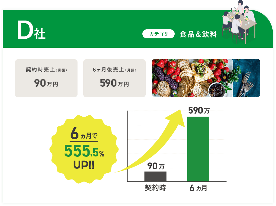 - 最大で月3社までと、数を絞ってお受けしています。1社ごとに深く向き合い、しっかり成果を出すために、担当できる企業数をあえて限定しています。また、すべての企業様と契約するわけではなく、「売上拡大の可能性が高い」と判断できた場合のみ、ご契約を進めています。